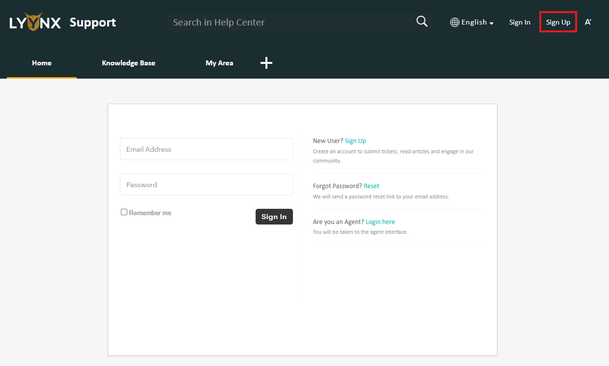To create a new account in the LYYNX Support Center, please follow the steps below: